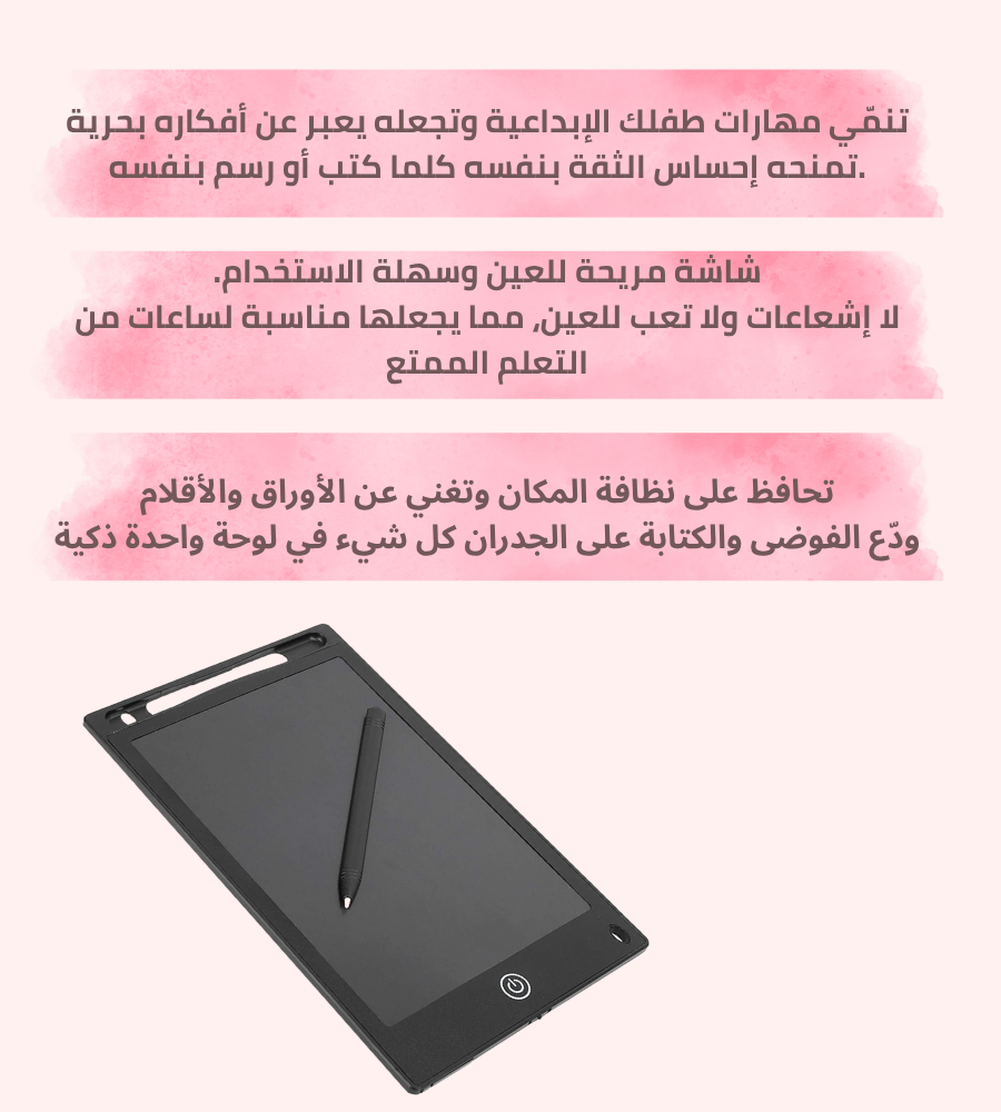 ✅طريقة التشغيل - شاشة الجهاز اللوحي بقطر 8.5 بوصة تُنتج صورةً بفعل الضغط. كل لمسة (ليس بالضرورة قلمًا، فالشاشة تتفاعل حتى مع الظفر!) تجعل الشاشة تُنشئ صورةً/نقشًا، كل ما تُبدعه في الجهاز. الجزء العلوي مزود بمقبض يُتيح لك تخزين قلمك بسهولة دون القلق من ضياعه.